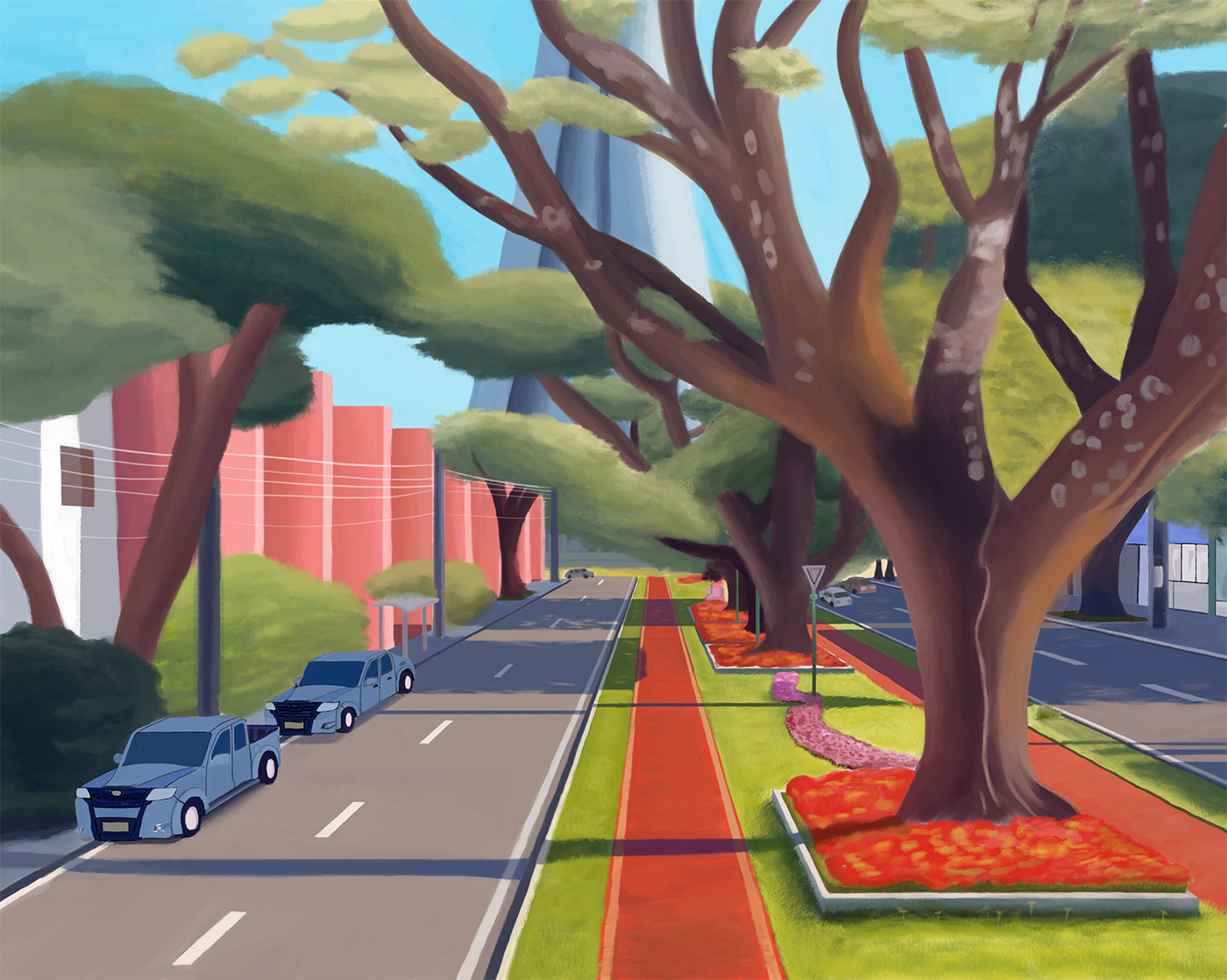 Essa é uma ilustração que retrata a avenida Cerro Azul, localizada na cidade de Maringá. Um dos lugares mais bonitos que já tive o prazer de conhecer!
